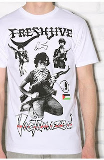 This shirt treats the Palestinian terrorists as heroes. What's next selling shirts with Hitler's face on them? That may seem a little harsh, but these nut jobs blow themselves up attempting murder innocent people. Some of the people who die at the hands of these suicide murderers are small children. Israel is a democracy, and has a free press. If the Palestinians really had it so bad, why couldn't they just use none violent protest like Ghandi or Martin Luther King? The Palestinian Authority is not a democracy and does not have freedom of the press or freedom of religion. Liberals who condemn America for homophobia ignore the fact that the Palestinians kill people for being gay.