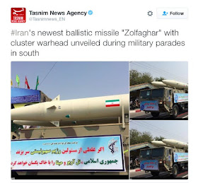 At a parade in Tehran, shown on state TV, the military displayed a wide array of long-range missiles, tanks, and the Russian-supplied S-300 surface-to-air missile defense system. In a reference to Iran’s arch-foe Israel, a banner on one military truck shown on state TV read,: