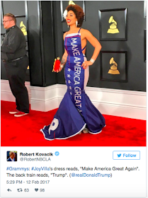 The dress that Joy Villa wore was made from a Trump Flag. As a huge Trump supporter, Joy was naturally very excited about the dress.