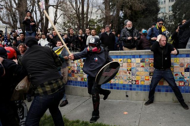 It's always darkest before the dawn. During Saturday's pro-Trump rally in Berkeley, CA, antifags attended and started to rabble rouse -- spraying old men in the face with pepper spray, acting like reprobate vagabonds -- deserving of the stick.