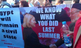 Not only did her face regularly appear next to Obama’s in placards; it sometimes appeared alone, indicating just how closely she was seen as supporting the Brotherhood. It should be noted that these were not isolated sightings, as shown by the number of different placards and signs: