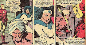 Still, it's a lot better than another example of Mantlo's writing, in the 1982 Contest of Champions miniseries - one of the earliest Marvel published after DC began the concept with World of Krypton in 1979 - and the following scene involving the Arabian Knight, one of a few characters Mantlo created, is not very flattering: